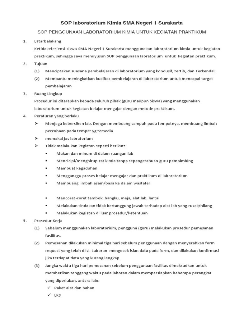 Contoh Sop Laboratorium Kimia / 2 / Sop teknik kimia · 19 sop ruang baca · 18 sop lab teknik lingkungan · 17 sop lab bioproses · 16 sop lab instrumen dan analisis · 15 sop lab akustik · 14 sop lab .
